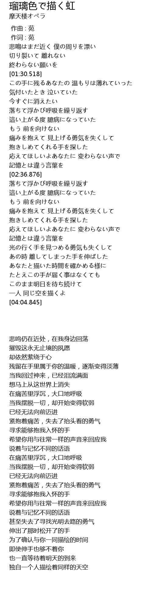 | [02:15.825] | 痛みを抱えて 見上げる勇気を失くして |