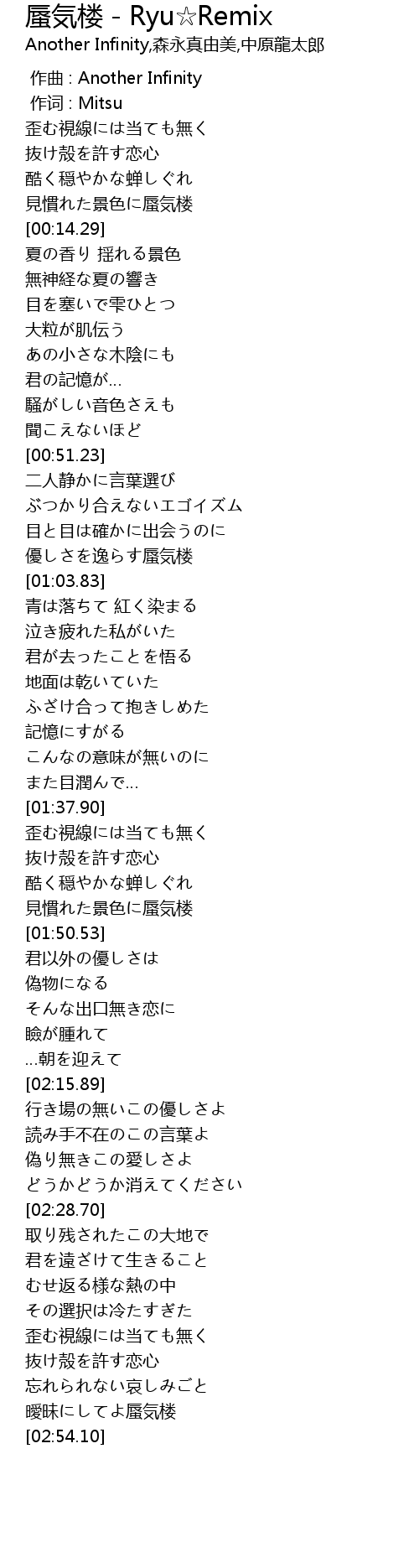 | [00:11.13] | 見慣れた景色に蜃気楼 |