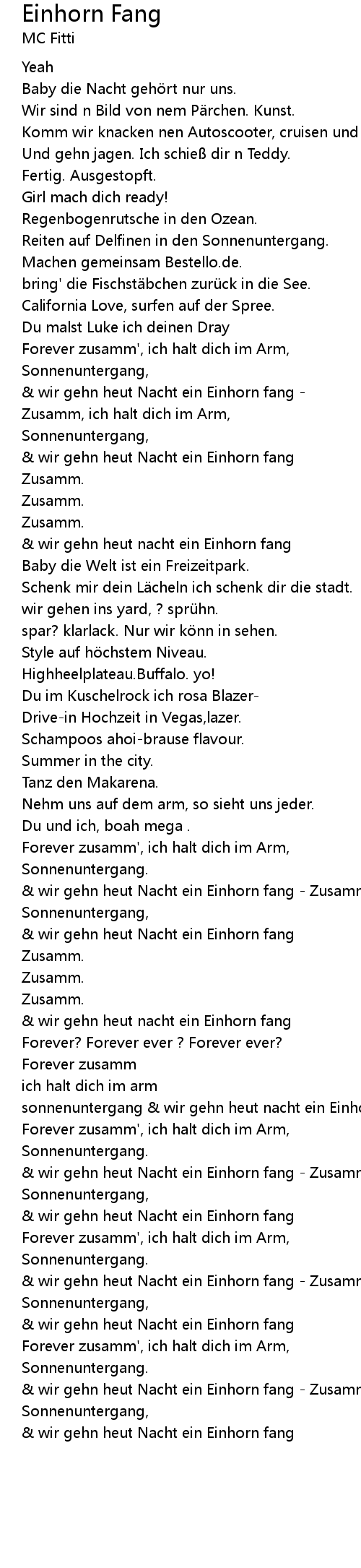 | wir gehn heut Nacht ein Einhorn fang Zusamm, ich halt dich im Arm, | |