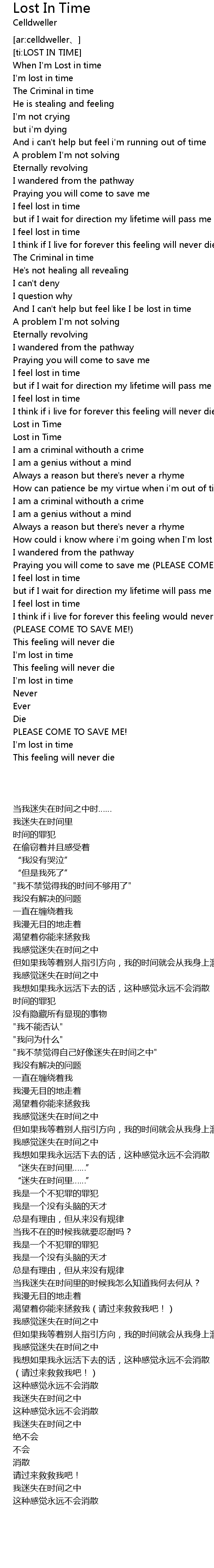 | [02:03.95] | And I can't help but feel like I be lost in time |