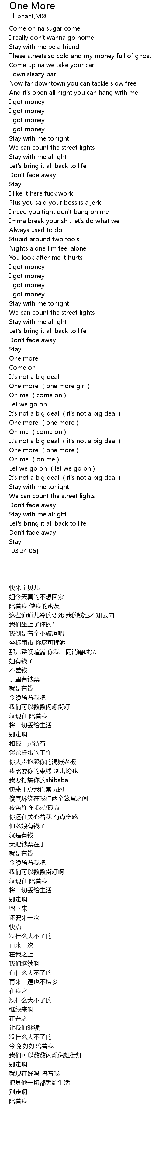 | [00:13.17] | These streets so cold and my money full of ghost |