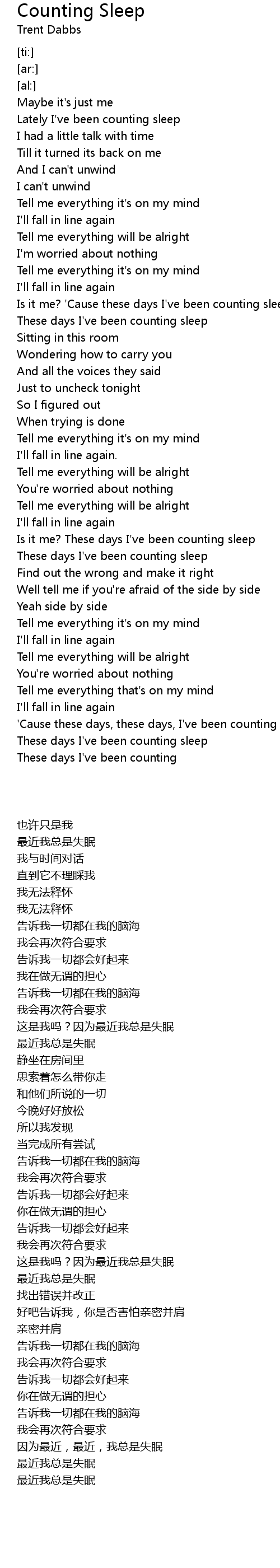 Lately I've been counting sleep |