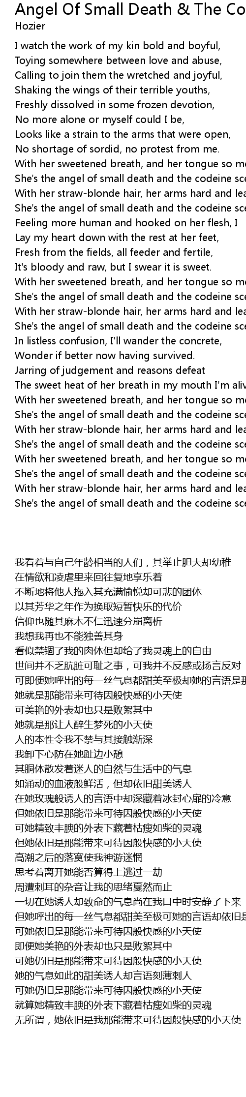 | [01:47.21] | She's the angel of small death and the codeine scene. |