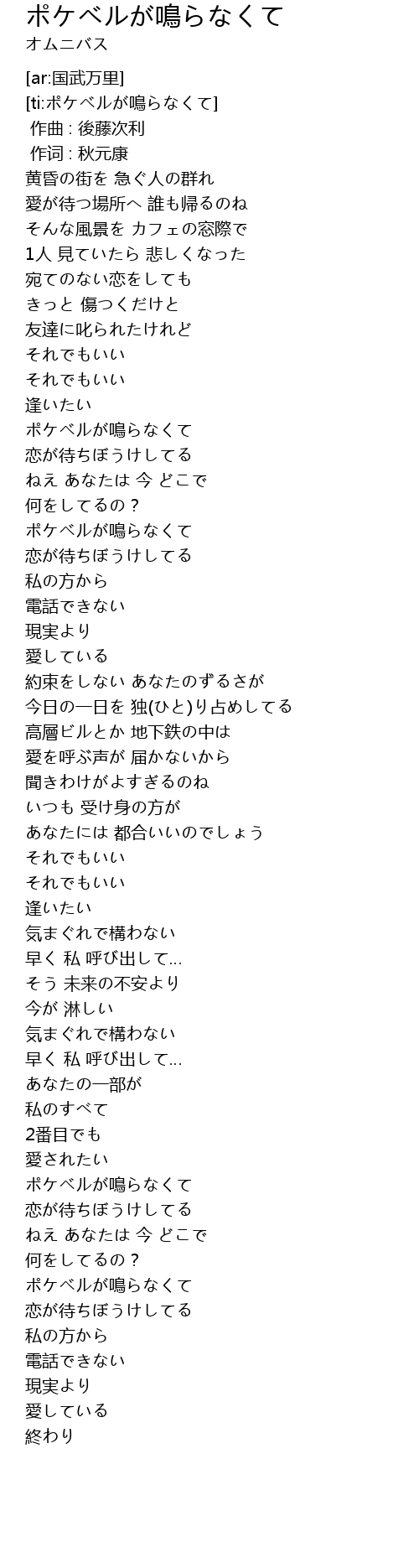 | [ti:ポケベルが鳴らなくて] | |
