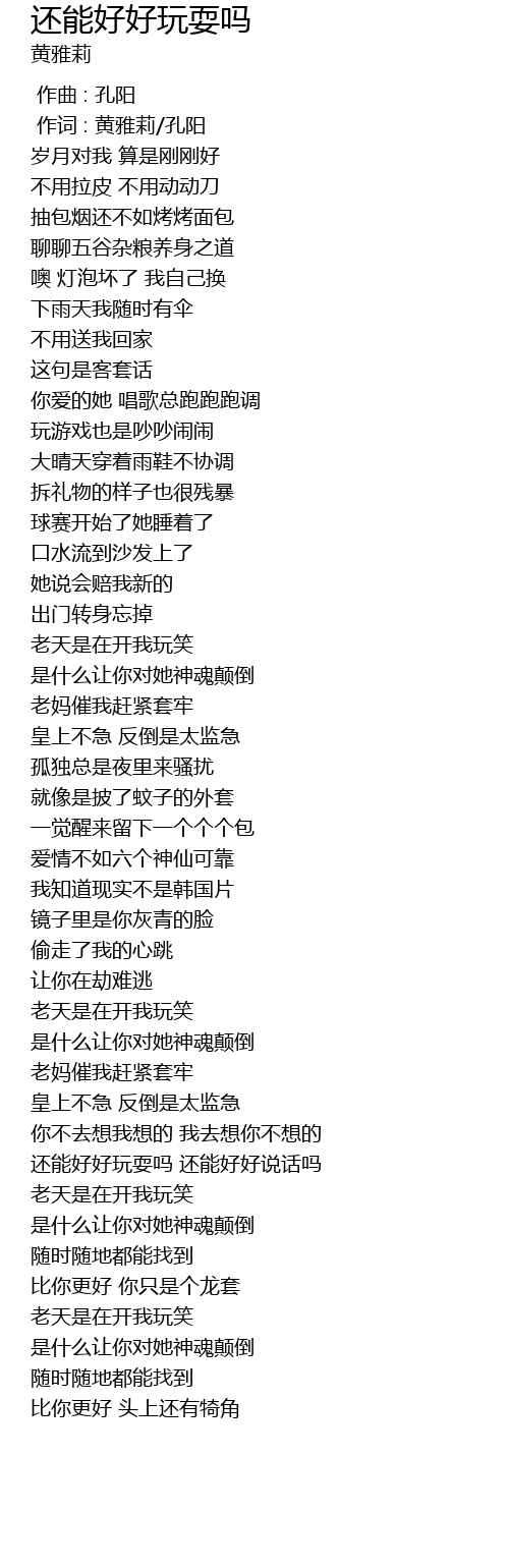 | [02:31.850] | 还能好好玩耍吗 还能好好说话吗 |