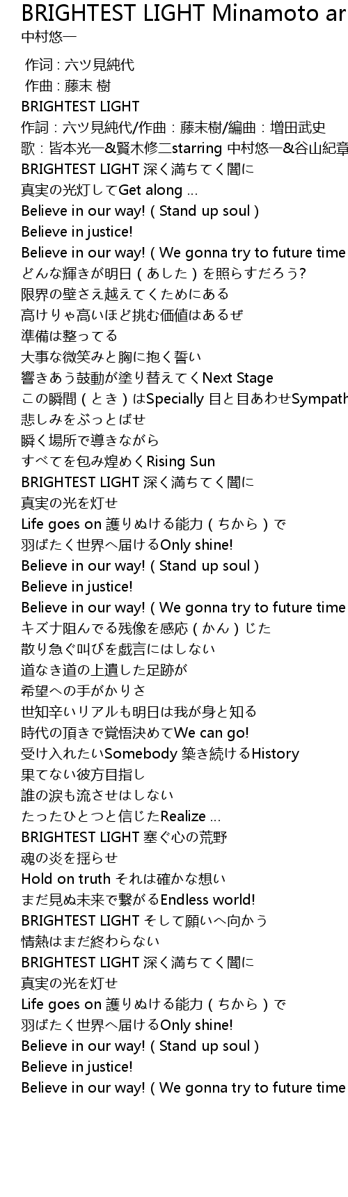 | [03:05.606] | BRIGHTEST LIGHT そして願いへ向かう |