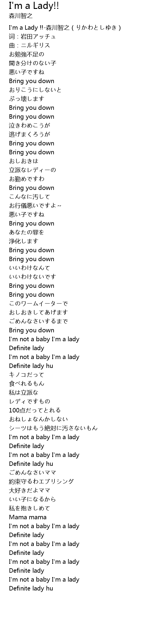 | [00:00.00] | I' m a Lady !! sēn chuān zhì zhī |