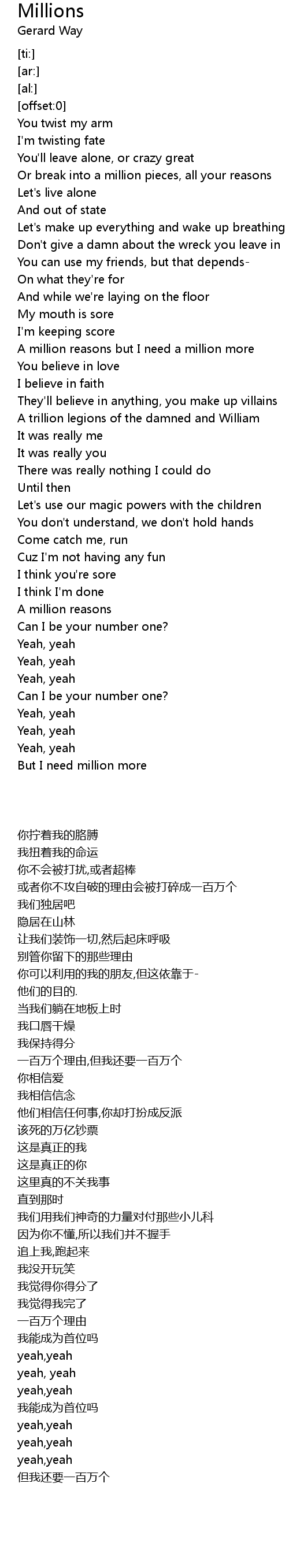 A million reasons but I need a million more |