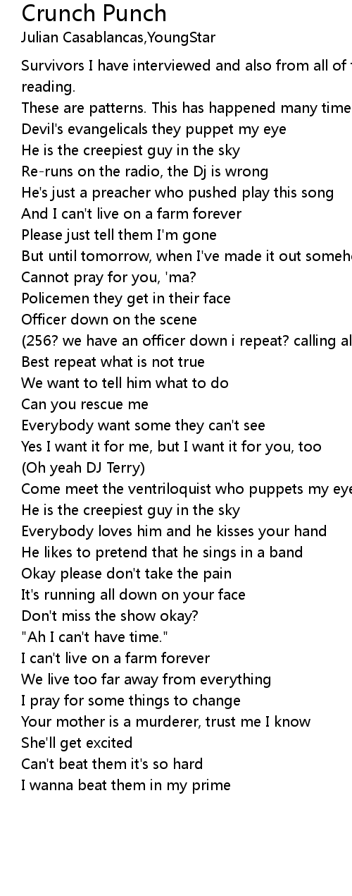 | [02:50.000] | Come meet the ventriloquist who puppets my eye |