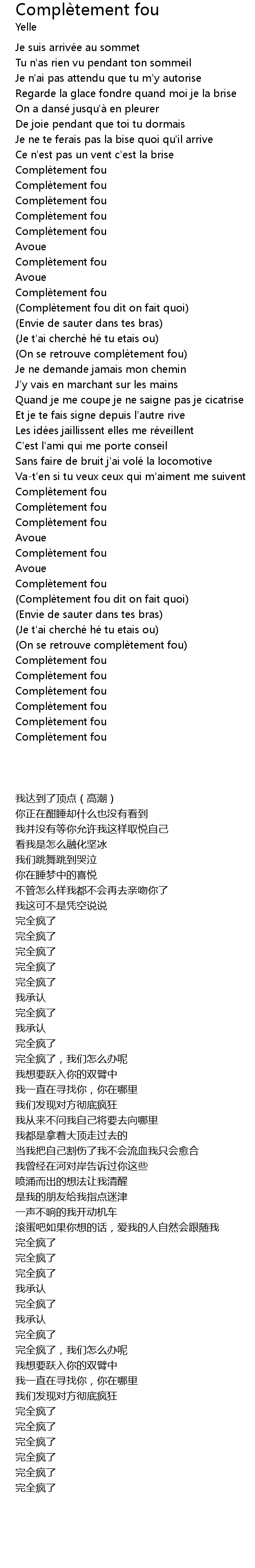 | [00:46.17] | Complè tement fou |