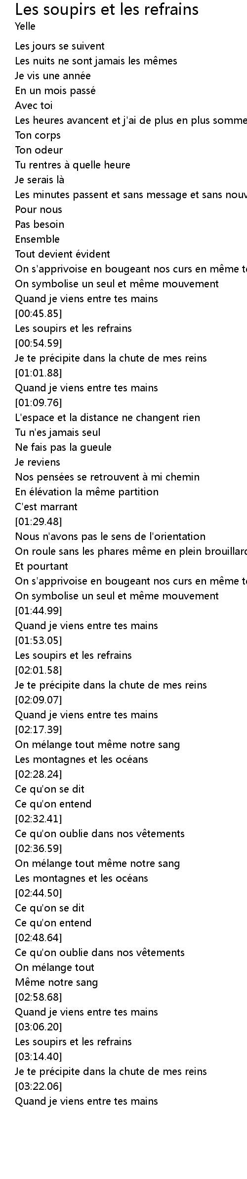 | [03:08.38] | Les soupirs et les refrains |