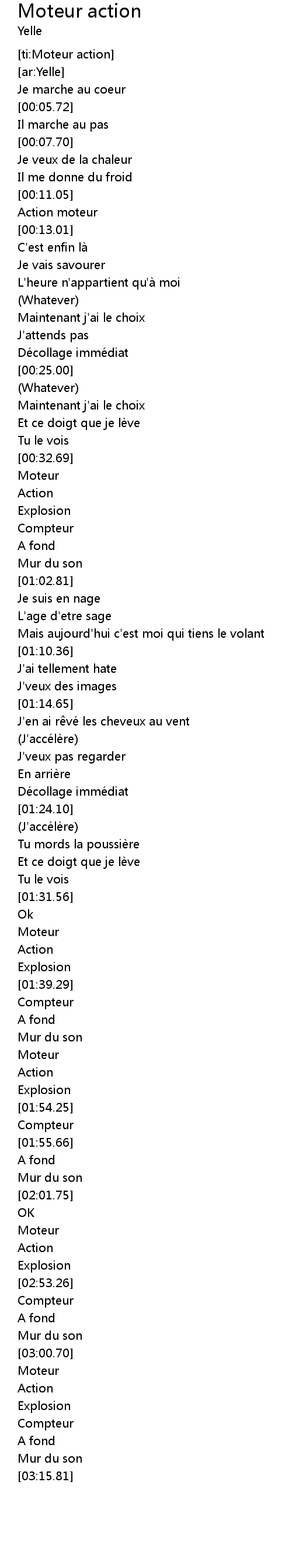 | [01:07.39] | Mais aujourd'hui c'est moi qui tiens le volant |