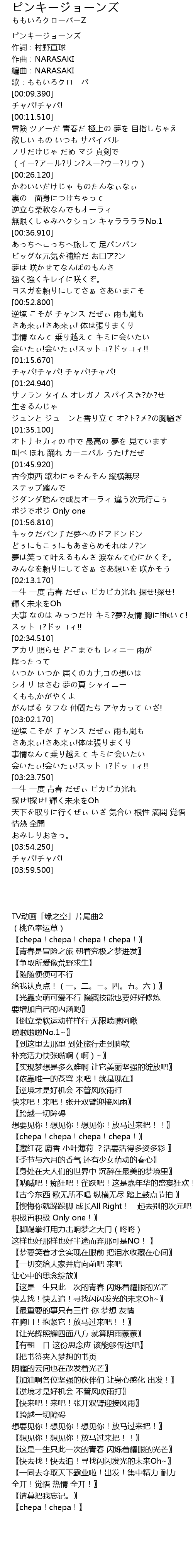 | [00:06.450] | 歌:ももいろクローバー |