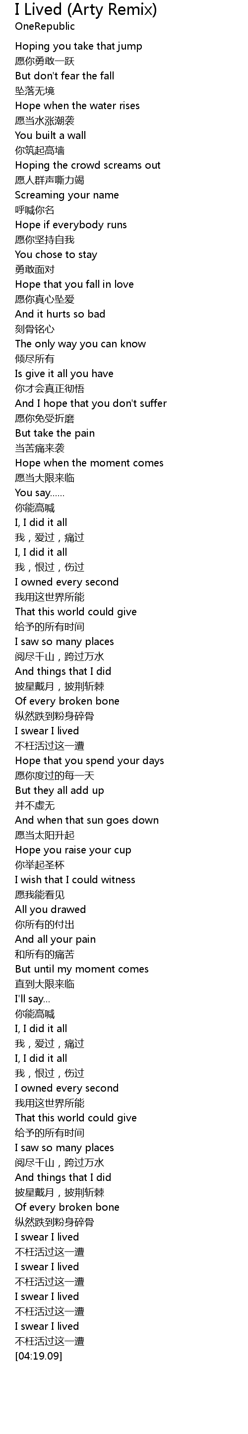 | [04:10.34] | bù wǎng huó guò zhè yī zāo |