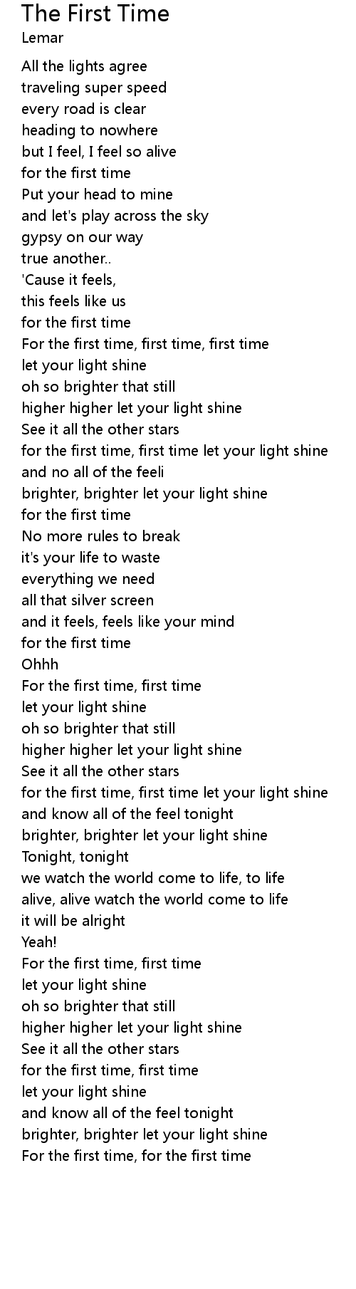 for the first time, first time let your light shine |