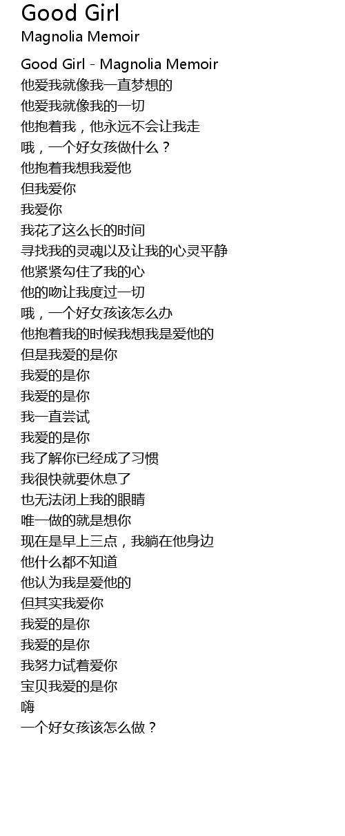 | [01:04.03] | 哦,一个好女孩该怎么办 |