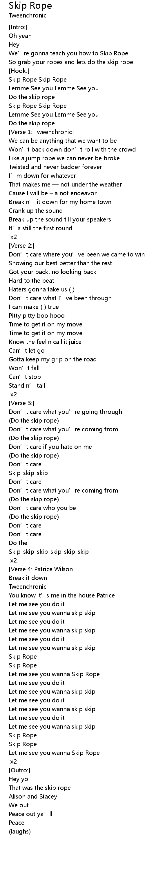 | Song | Skip Rope |