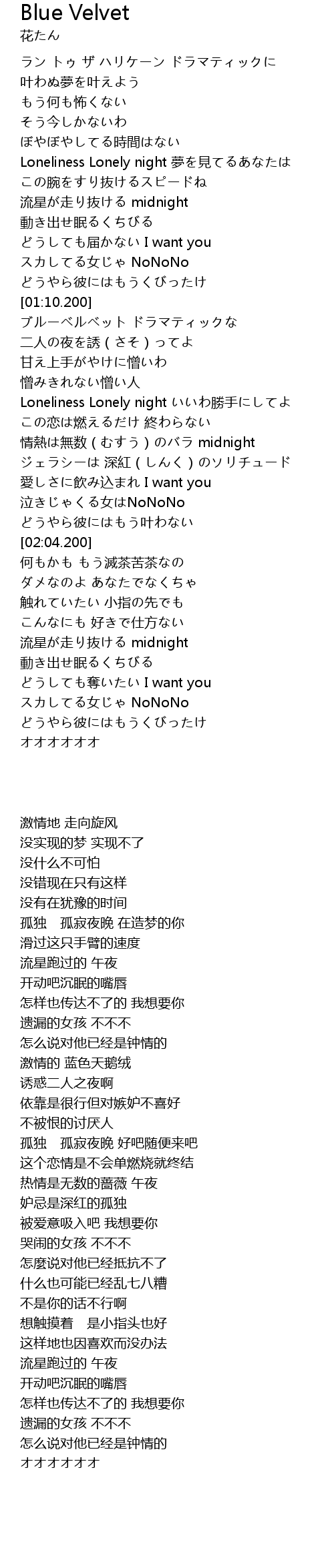 | [01:13.900] | ブルーベルベット ドラマティックな |
