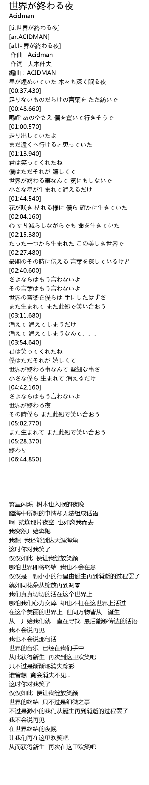 | [04:25.440] | 世界が終わる事なんて 些細な事さ |