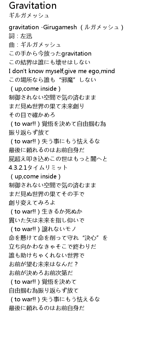| [00:00.00] | gravitation -Girugamesh (ルガメッシュ) |