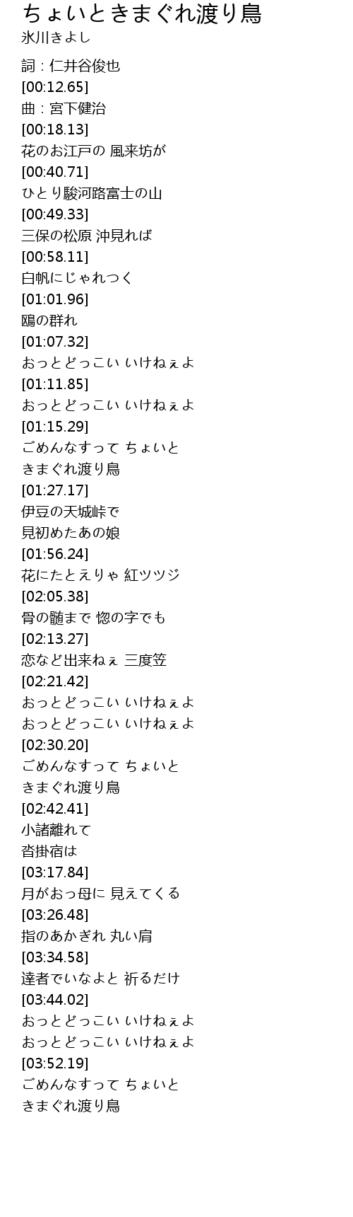 | [03:58.16] | きまぐれ渡り鳥 |
