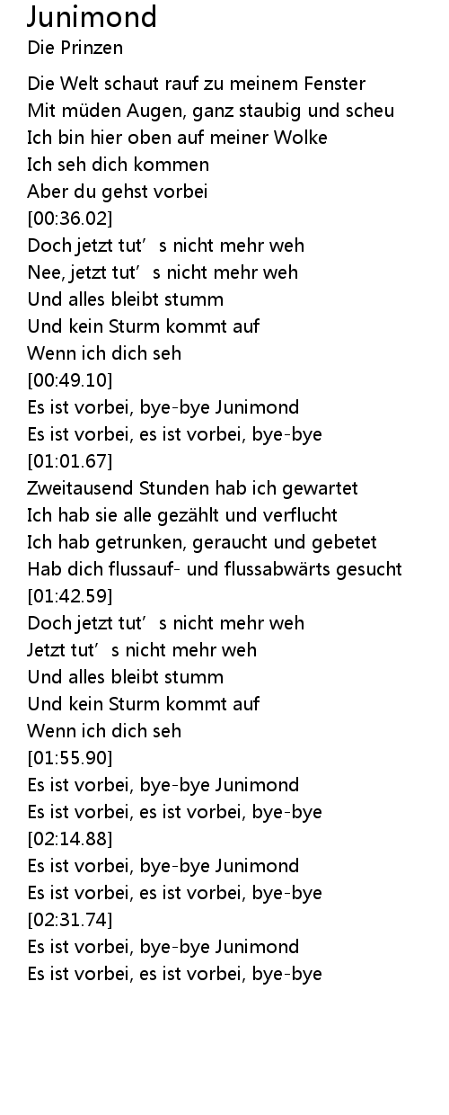 | [00:49.54] | Es ist vorbei, bye-bye Junimond |