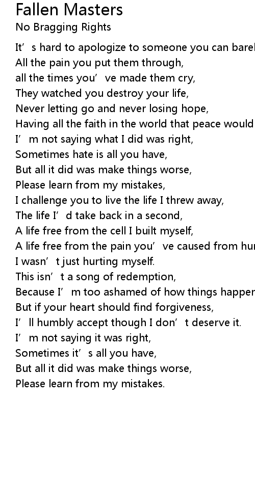 | A life free from the pain you' ve caused from hurting someone else, | |