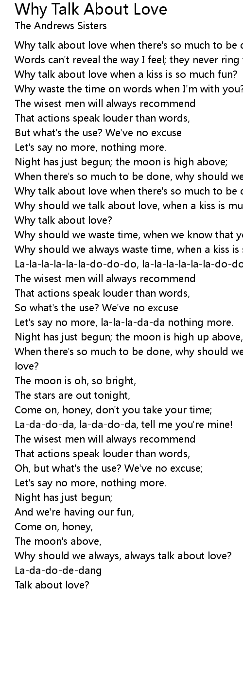 When there's so much to be done, why should we, should we, should we talk about love? |