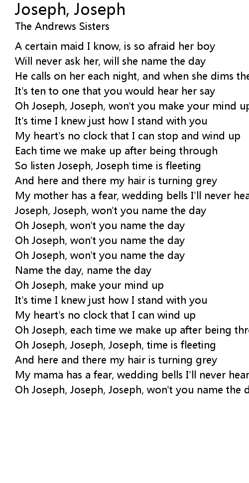 Oh Joseph, Joseph, Joseph, won't you name the day |