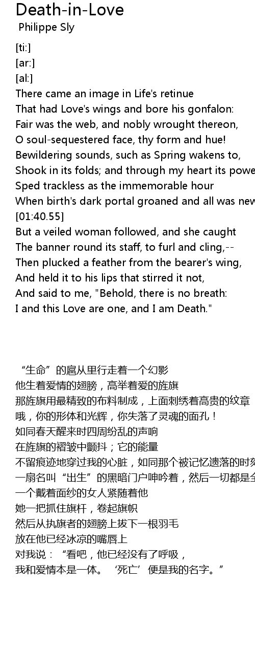 I and this Love are one, and I am Death." |