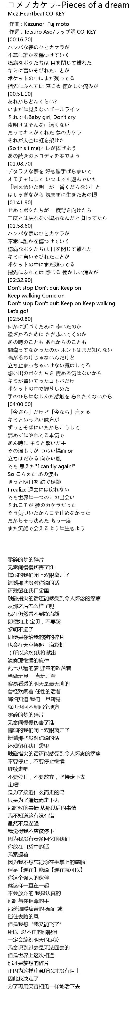 | [00:58.95] | だってキミがくれた 夢のカケラ |