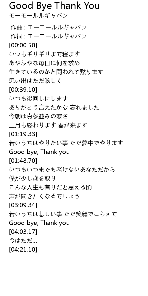 | [00:49.35] | ありがとう言えたかな 忘れました |