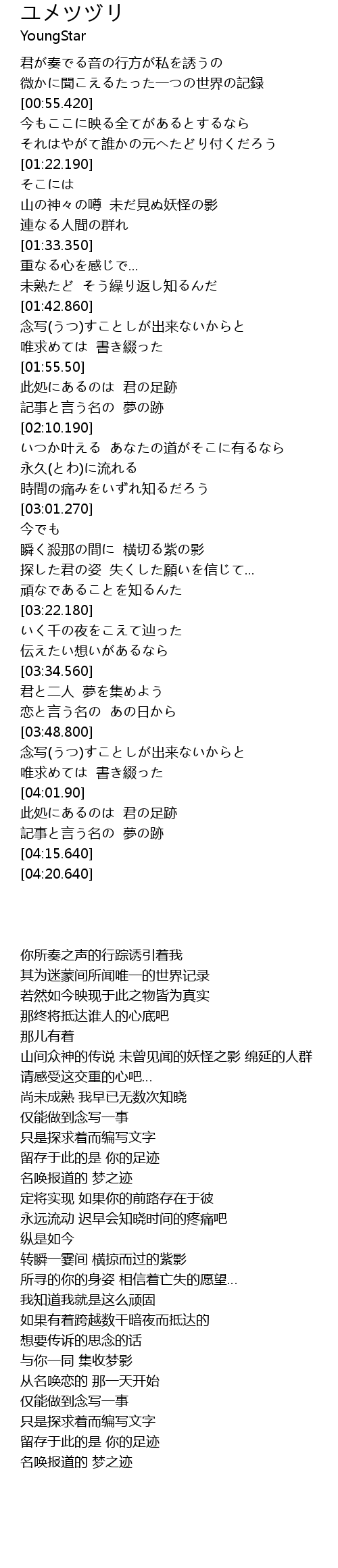 | [02:35.500] | いつか叶える あなたの道がそこに有るなら |