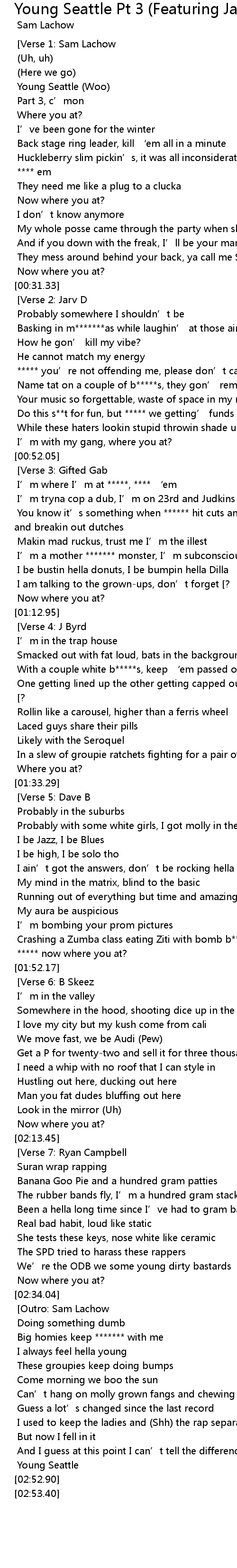 | Song | Young Seattle Pt 3 (Featuring Jarv Dee, Gifted Gab, J. Byrd, Dave B, B Skeez & Ryan Campbell) |