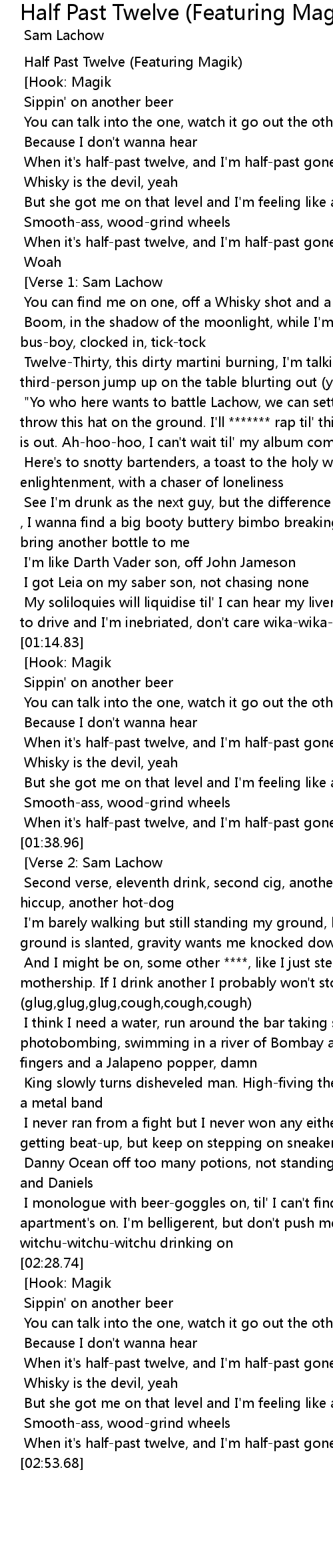 When it's half-past twelve, and I'm half-past gone |