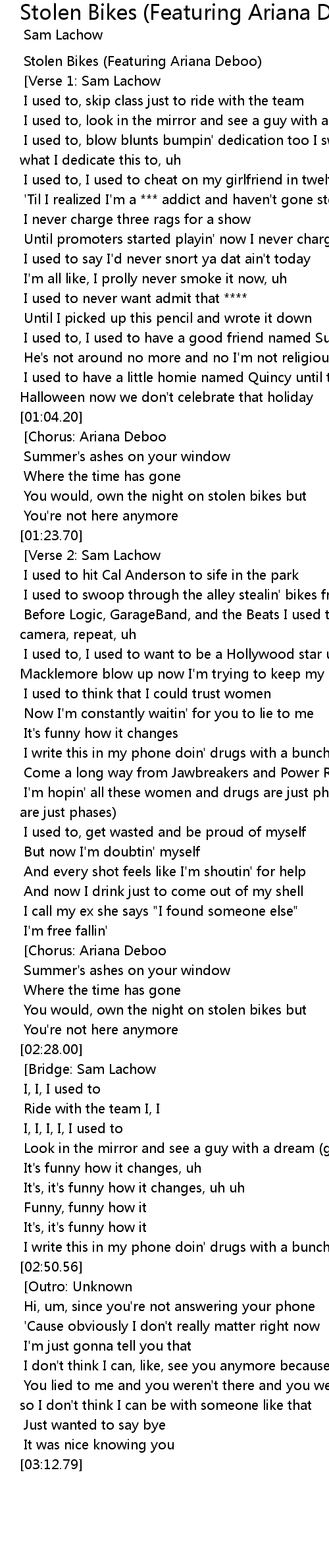 Stolen Bikes (Featuring Ariana Deboo) Lyrics