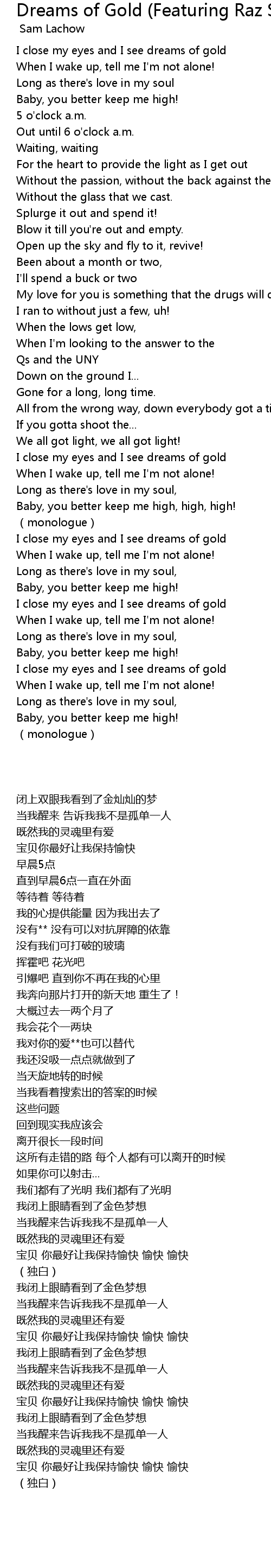 | Song | Dreams of Gold (Featuring Raz Simone & Ariana Deboo) |