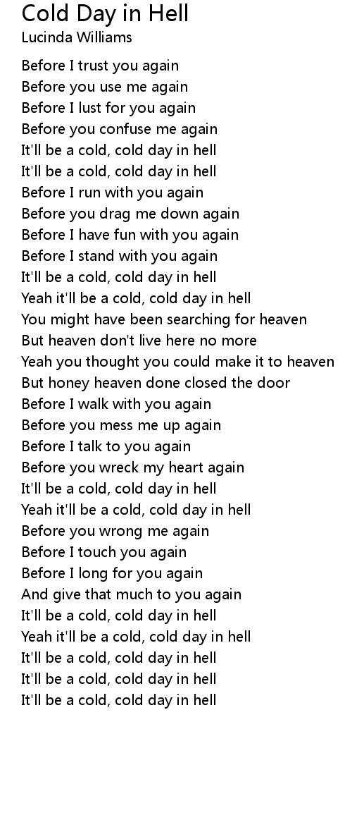 Cold Day in Hell Lyrics
