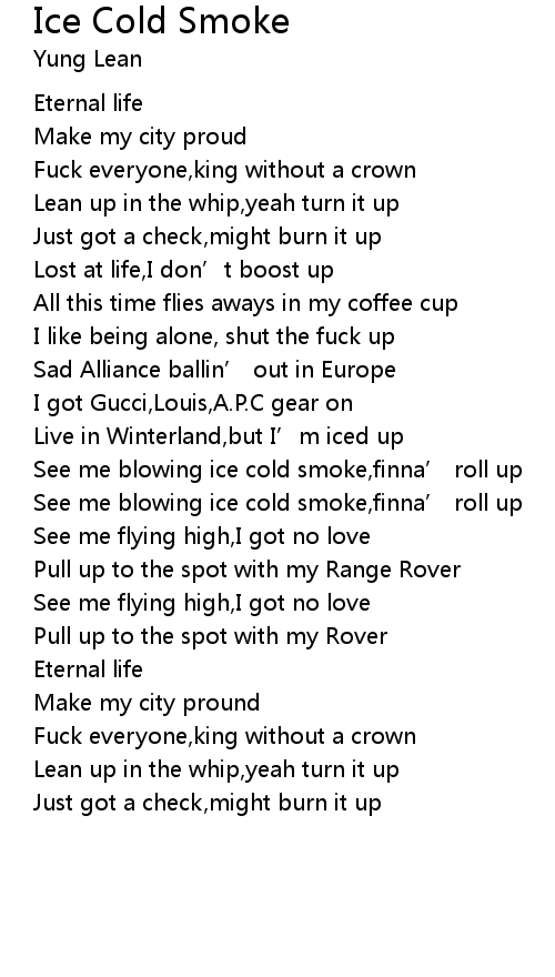 | [00:48.84] | See me blowing ice cold smoke,finna’ roll up |