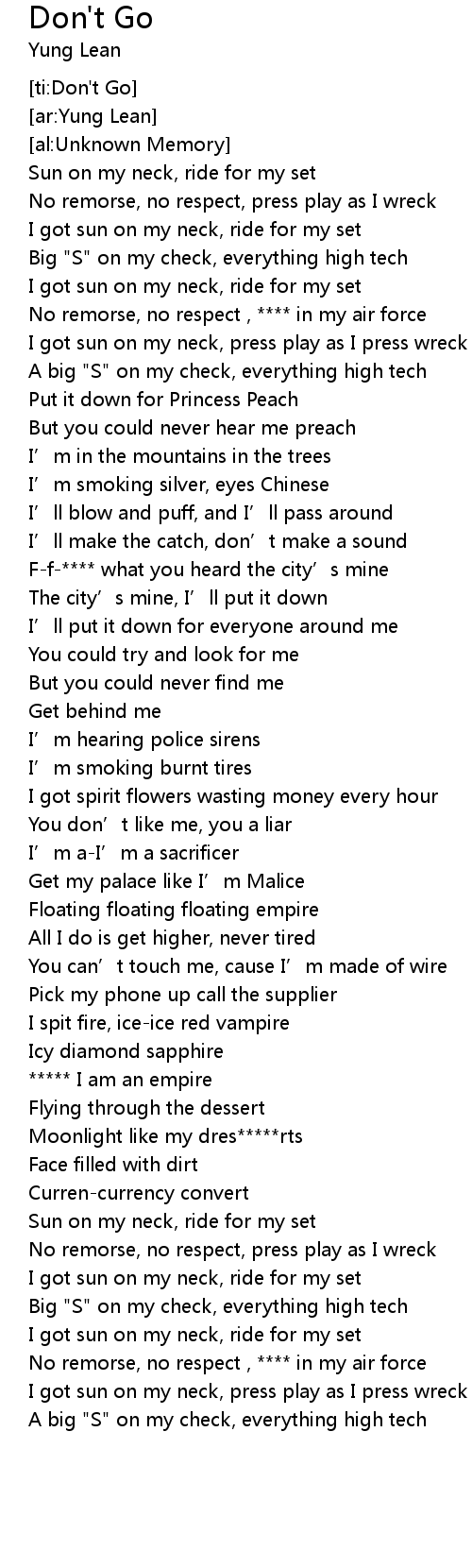 | [03:24.77] | No remorse, no respect , **** in my air force |