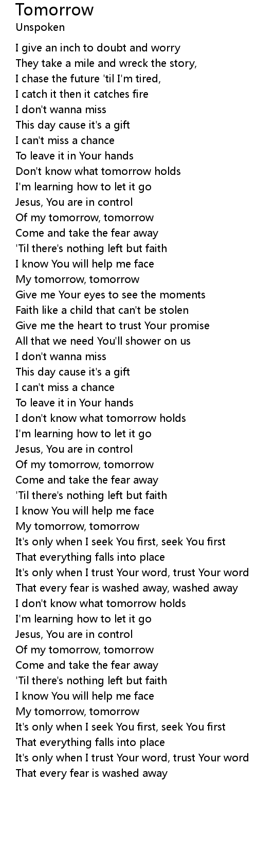 | [00:55.96] | Of my tomorrow, tomorrow |