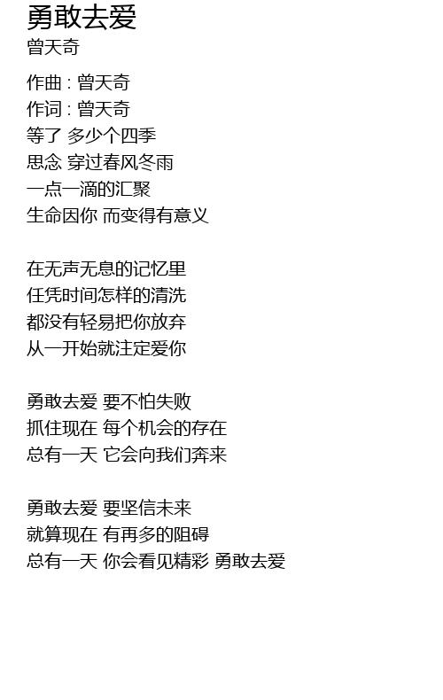 | yong gan qu ai yao jian xin wei lai | |