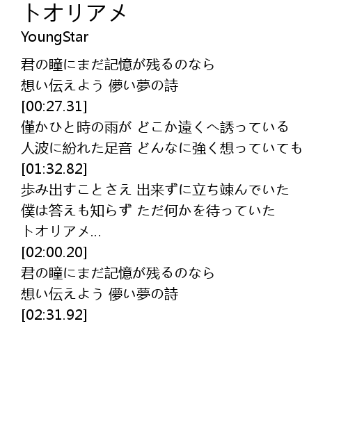 | [02:18.34] | 想い伝えよう 儚い夢の詩 |