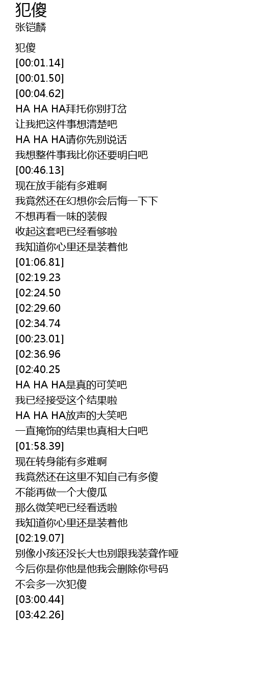 | [00:00.00] | 犯傻 |