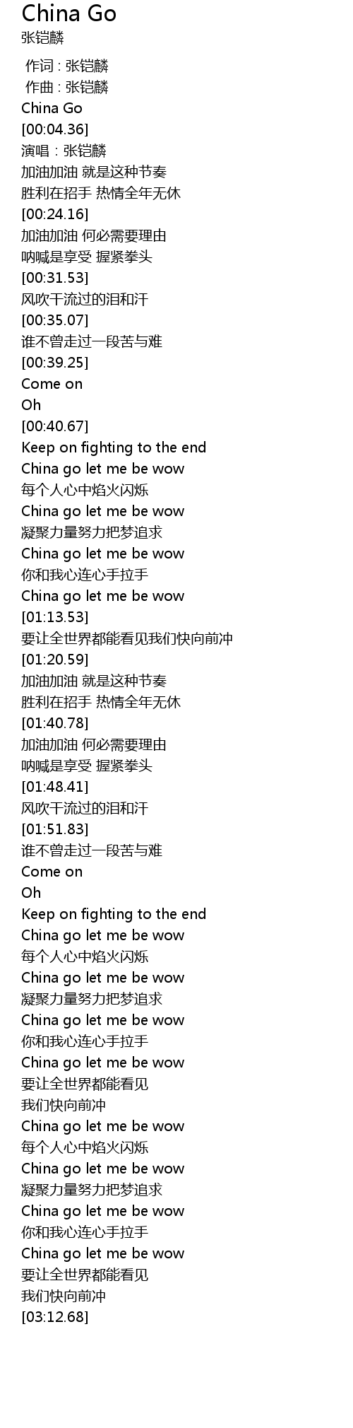 | [02:57.59] | China go let me be wow |