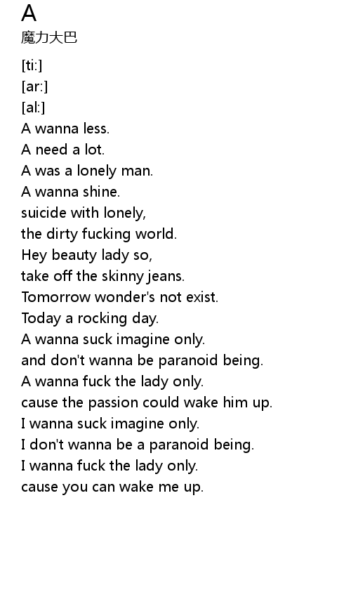 | [00:16.71] | A wanna less. |