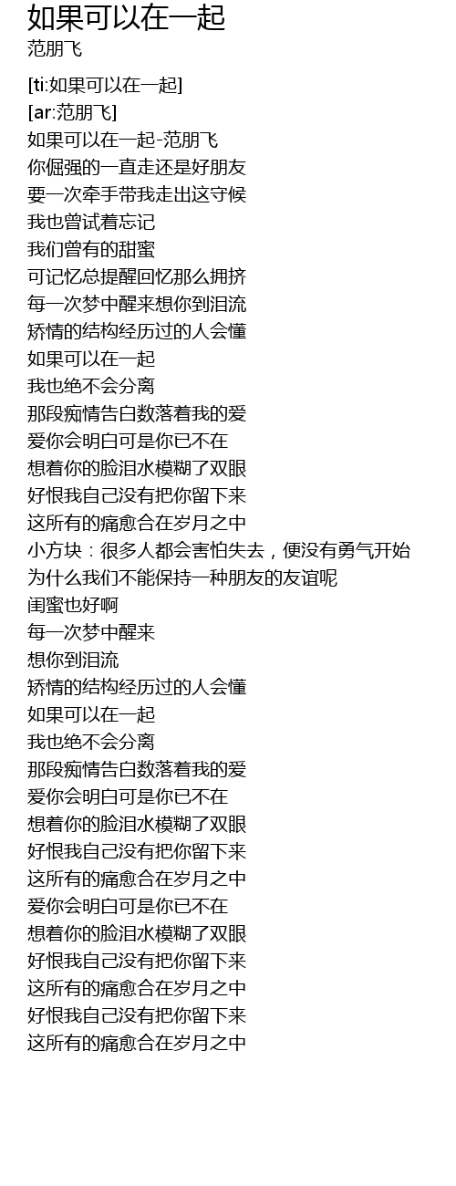 | [00:01.960] | 如果可以在一起-范朋飞 |
