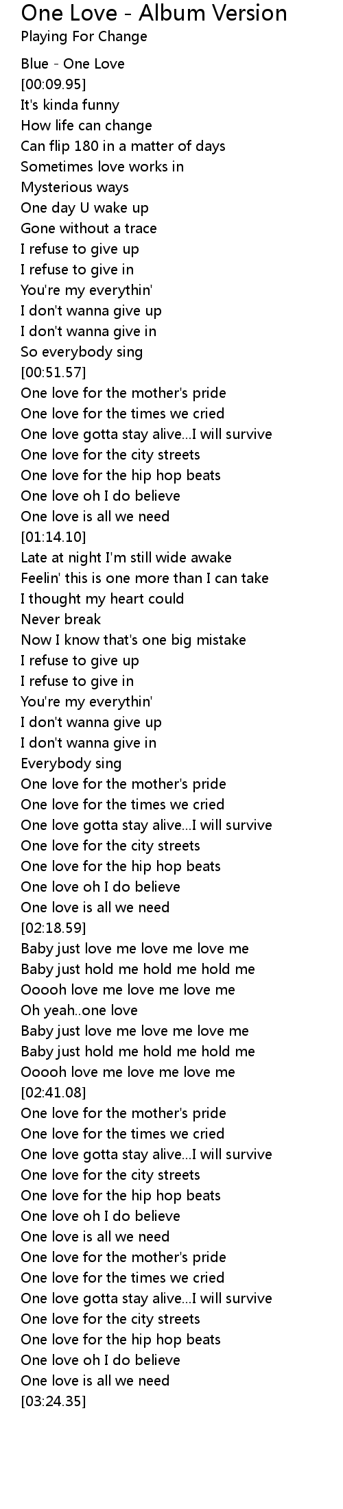 One love oh I do believe |