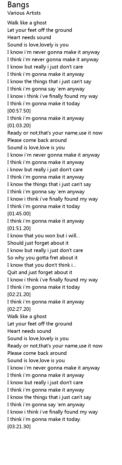 I know i'm never gonna make it anyway |