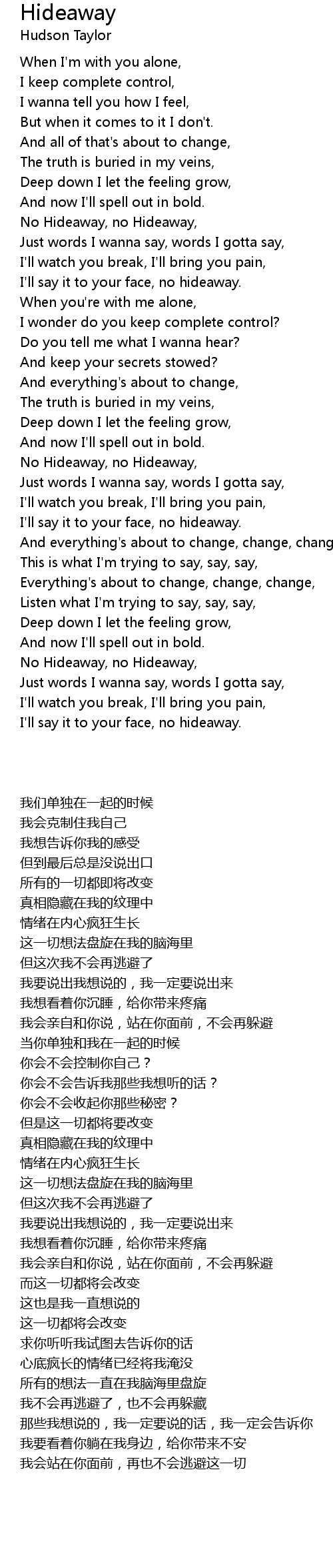 No Hideaway, no Hideaway, |